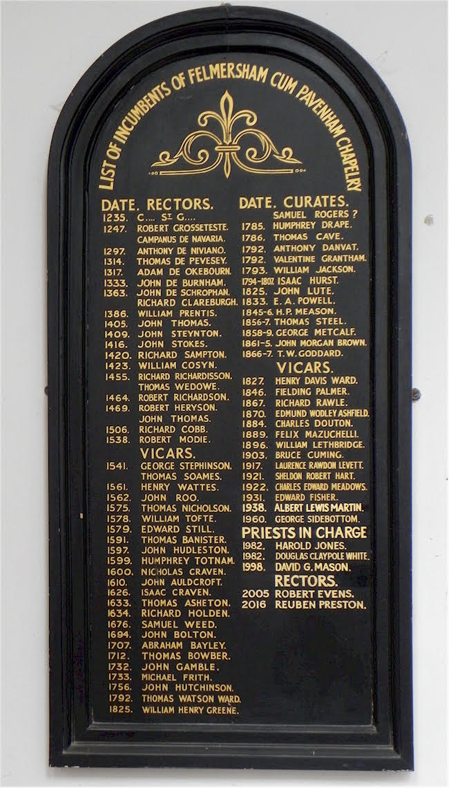 | 12 Feb 1318 | Presentation of Adam de Okebourne to the church of Felmersham, Co. Bedford. Calendar of Patent Rolls 1317 – 1321 p 79 |