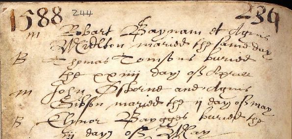 Thomas Ogborne married Agnis Gibson in 1588 and they were blessed with 8 children, 5 boys and 3 girls. It seems likely that Thomas was the son of Thomas probably of the same parish, and various descendants were shop keepers in the town – butchers, bakers and shoemakers. William Ogborne was mayor of Thornbury 1676/7.